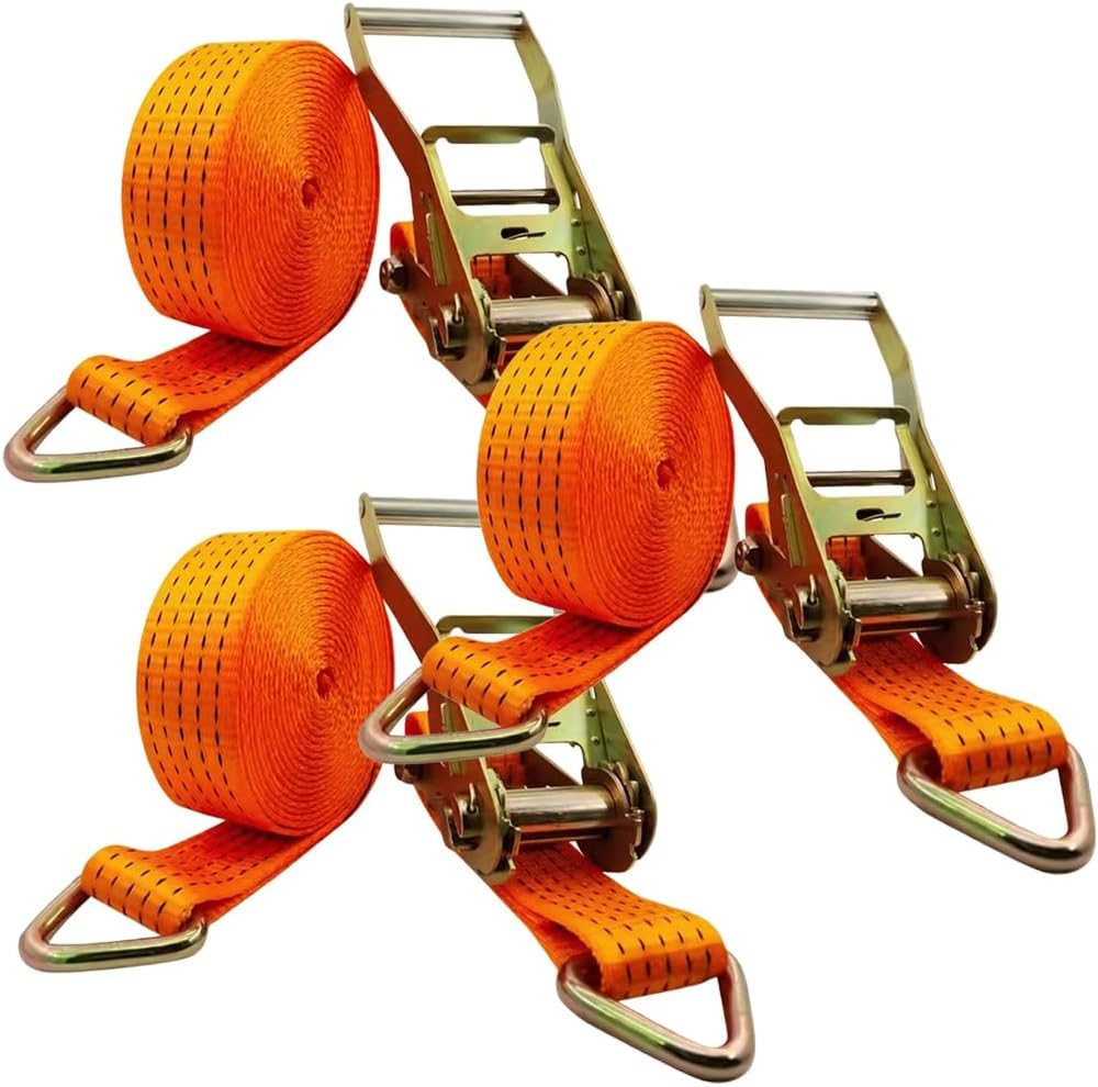 • Material: Ratchet straps are woven from metal steel & high-density polyester fiber, which are wear-resistant, non-curling & strong resistance to breaking; super soft, no damage to cargo; Uses steel heat treatment, high hardness, not easy to bend