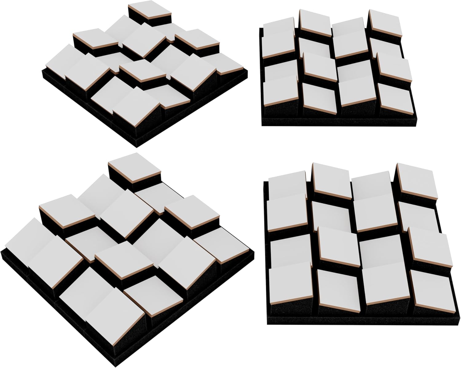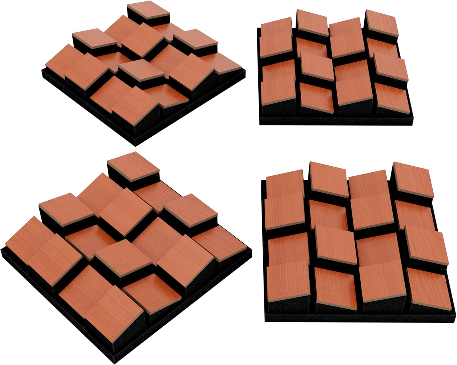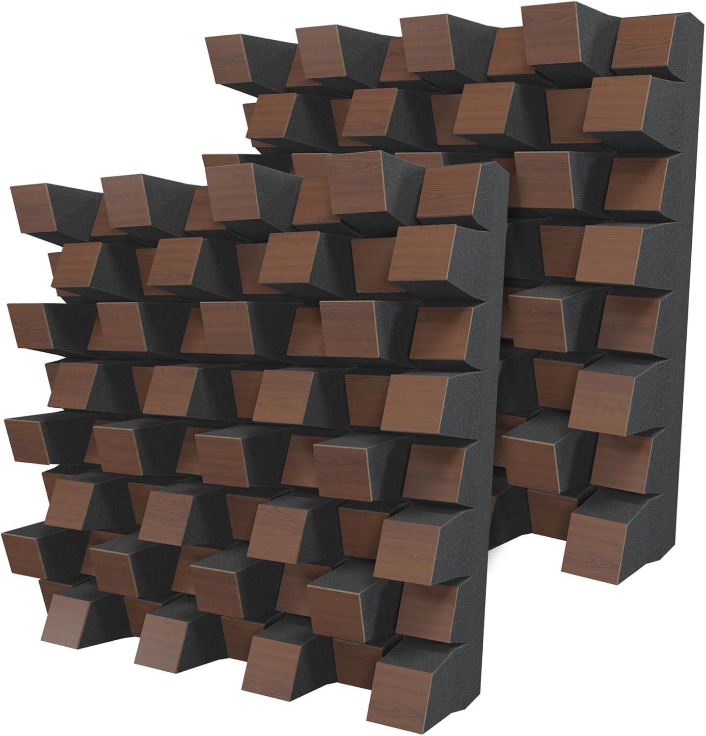 Diffusers «Arto-HALF» are used in the acoustic decoration of walls and ceilings to create a diffuse sound field in the room. It is most often used in: listening rooms, sound recording studios, speech booths, home theaters, concert halls, on television, radio, etc.By creating a diffuse sound field, acoustics improve qualitatively even in a small studio room, making it sound new. This diffusers feature 2D QRD (Quadratic Residue Diffuser) construction, delivering superior levels of diffusion, reflection, absorption, sound deadening, and isolation.ITEM SPECIFICS:Functionality: Diffusion, Scattering, Reflection and AbsorptionScattering range: 625Hz to 7000HzAbsorption Frequency: Low, Medium and High FrequenciesMaterial: Laminated HDF and Acoustic FoamSize: 50x25cm / 19.7x9.85 inchPanel thickness: 13cm and 15cm / 5.1 and 6 inchesColor: available in 10 different colorsOverall NRC: 0.48Boxes of: 2 unitsINTENDED USE: Scattering of sound waves in the room. Partial absorption of sound waves.RECOMMENDED USE IN: Recording | Podcast Studios, Home Theaters, Music Rooms, Office Environments, Rehearsal Rooms, Auditoriums, Conference Rooms, etc.MOUNTING OPTIONS:Fixing with double-sided adhesive tape (included) in the vertical plane.To install the panels on the ceiling, it is recommended to use construction adhesive (so-called liquid nails).