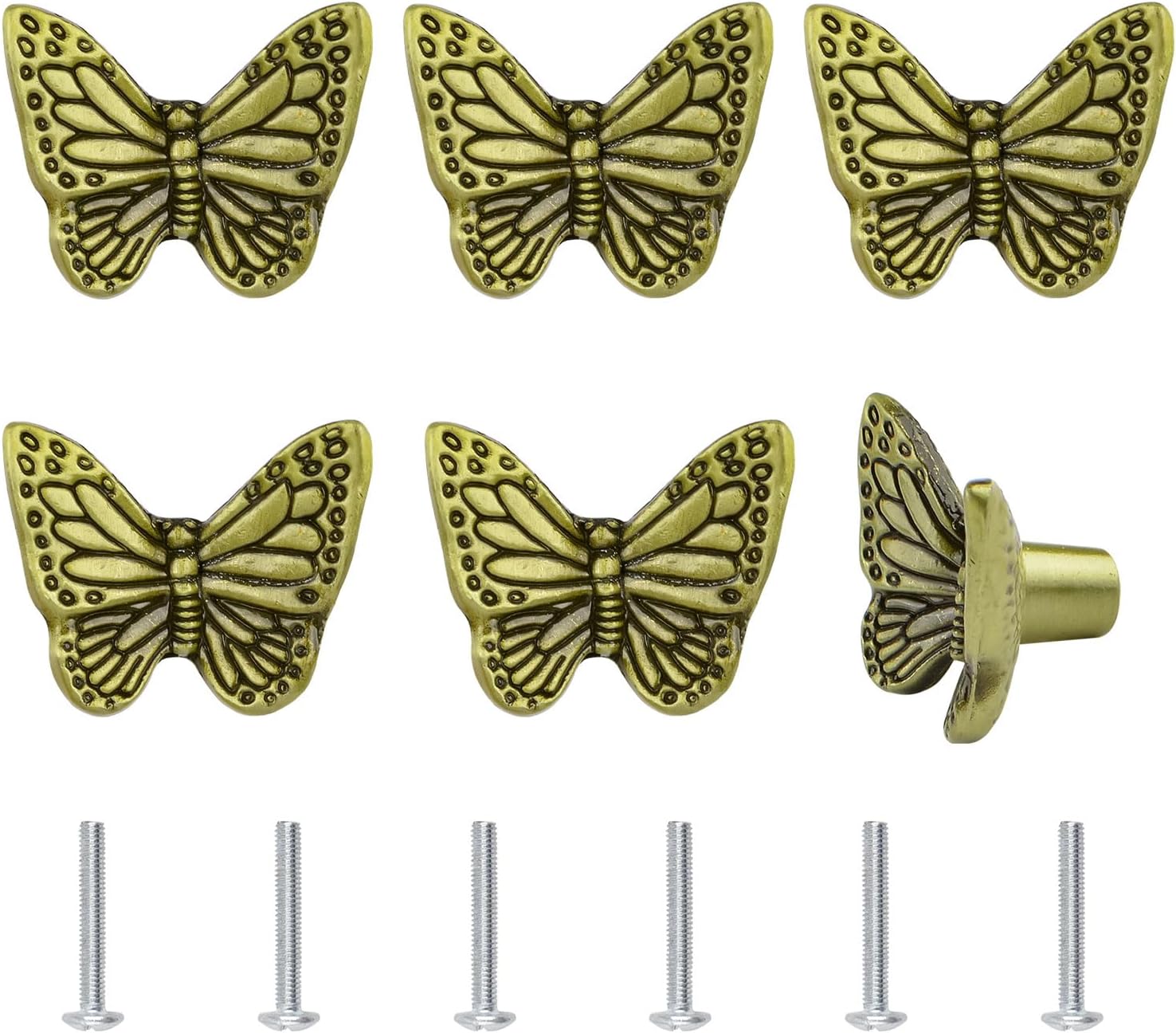 High Quality: The drawer pull knob is made of premium zinc alloy, with electroplated surface, which is not easy to rust, deform and break.Good Workmanship: The whole handle is designed in the shape of a vintage butterfly, which looks very beautiful and elegant.Easy to Use: Equipped with screws, which can make installation more convenient. Note: 25mm long screws can be used for 20mm thick boards.Specification: *Material: Zinc Alloy*Size: As picture shown*Package Include: 24*Drawer Knob*Color: GoldNote: Please allow a little error on the size due to manual measurement.Due to equipment and lighting effects, there could be some slight differences in the color tone of the pictures and the actual item.Your satisfication with the product is our guideline.If you have any questions, please feel free to contact us, we will serve you as soon as possible.
