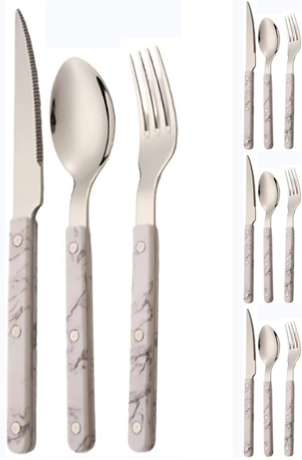 📦 Packaging quantity:3 pieces=(1 knife, 1 fork, 1 spoon).5 pieces=(1 knife, 1 fork, 1 spoon, 1 dessert spoon, 1 dessert fork).6 pieces=(1 knife, 1 fork, 1 spoon, 1 dessert spoon, 1 dessert fork, 1 butter knife).12 pieces=(4 knives, 4 forks, 4 spoons).20 pieces=(4 knives, 4 forks, 4 spoons, 4 dessert spoons, 4 dessert forks).24 pieces=(4 knives, 4 forks, 4 spoons, 4 dessert spoons, 4 dessert forks, 4 butter knives). 💕 Instructions for use and maintenance 💕 1. Before first use, carefully clean to ensure that there are no residues. 2. After use, it should be cleaned and dried to ensure its durability. 3. Do not use rough and sharp materials to scrub the surface of stainless steel. Stainless steel is prone to scratches, which affect its appearance. So use a soft cloth. 4. The dishwasher is safe, so you can use it in the dishwasher to save time. 💟 Shopping Tips 💟 Due to manual measurement, there may be an error of 1-2mm in size. 2. Due to the different lighting of the monitor and camera, there may be slight color differences. 3. After receiving the package, please check if it is open and if the product is correct. If you find any issues such as out of stock, incorrect products, or defects, please contact us via [email] and we will solve them for you within 24 hours. 🤟 We focus on the design of kitchen table gadgets, continuously improving product quality, testing, and diversity! Do our best to improve and enhance the quality of life in the kitchen! Meet the requirements and expectations of every customer!
