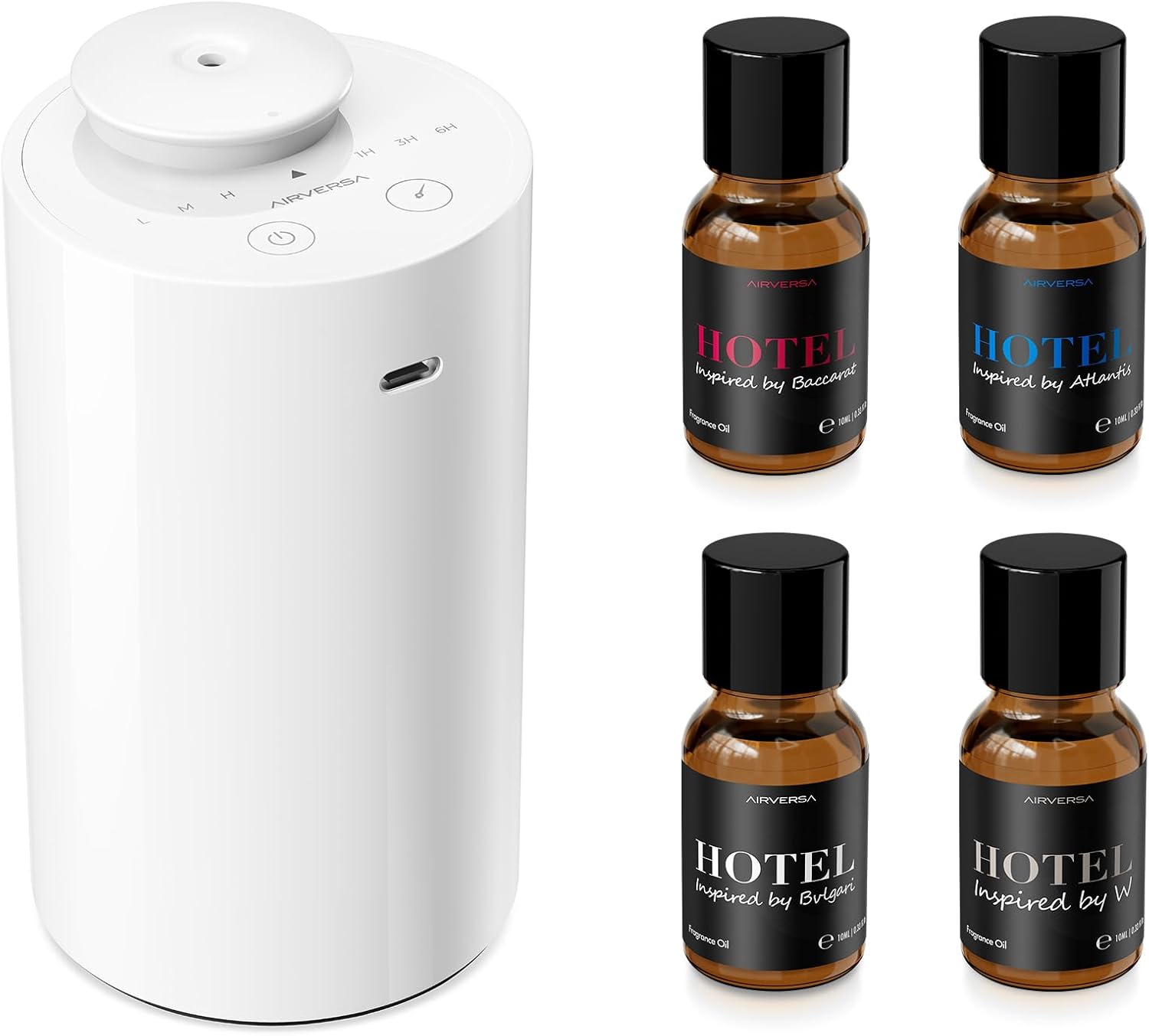 | Additional Features | ① Waterless patented technology, ② Long-lasting aroma, ③ Portable, cordless and rechargeable, ④ 5/10/15/20mL essential oil bottle compatible, ⑤ 45° spill-protection, cleaner and safer |