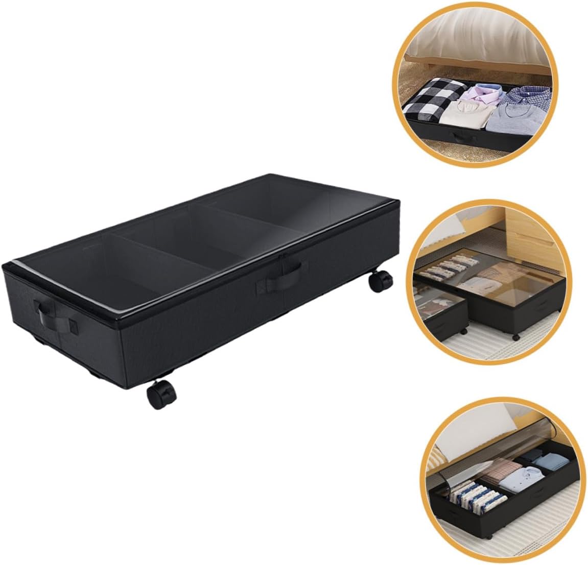 Package Include 1 x Under Bed Storage Bag Features -Color:Black -Size:80.00X42.00X16.00cm/31.44X16.51X6.29in -Product Info:Under-bed storage truck -Material:ABS, oxford cloth, iron -Smooth sliding functionality: easily move and access your stored items with the wheels deep under bed storage container. - The organizer storage box with wheel is made of ABS, oxford cloth, iron that is strong and does not warp, providing effective protection for your clothing storage bin under bed. - Easy to clean, simply wipe down your storage bags with a damp cloth and let dry underbed clothes organizers. - Window design allows you to see what is in the bag and where it is, easily find what you are looking for with ease flat storage containers. - This practical storage bag is suitable to be used to store quilts, blankets, clothes, etc under bed storage bag.Goods DescriptionUnder-bed Storage Bin It owns a simple and practical appearance design.deep under bed storage container Then, you can choose our under bed storage bin.under bed storage bag The under-bed storage bag can maximize under-bed space.storage for under bed As the increase of the number of daily necessities, you must need a nice-looking storage bag at home