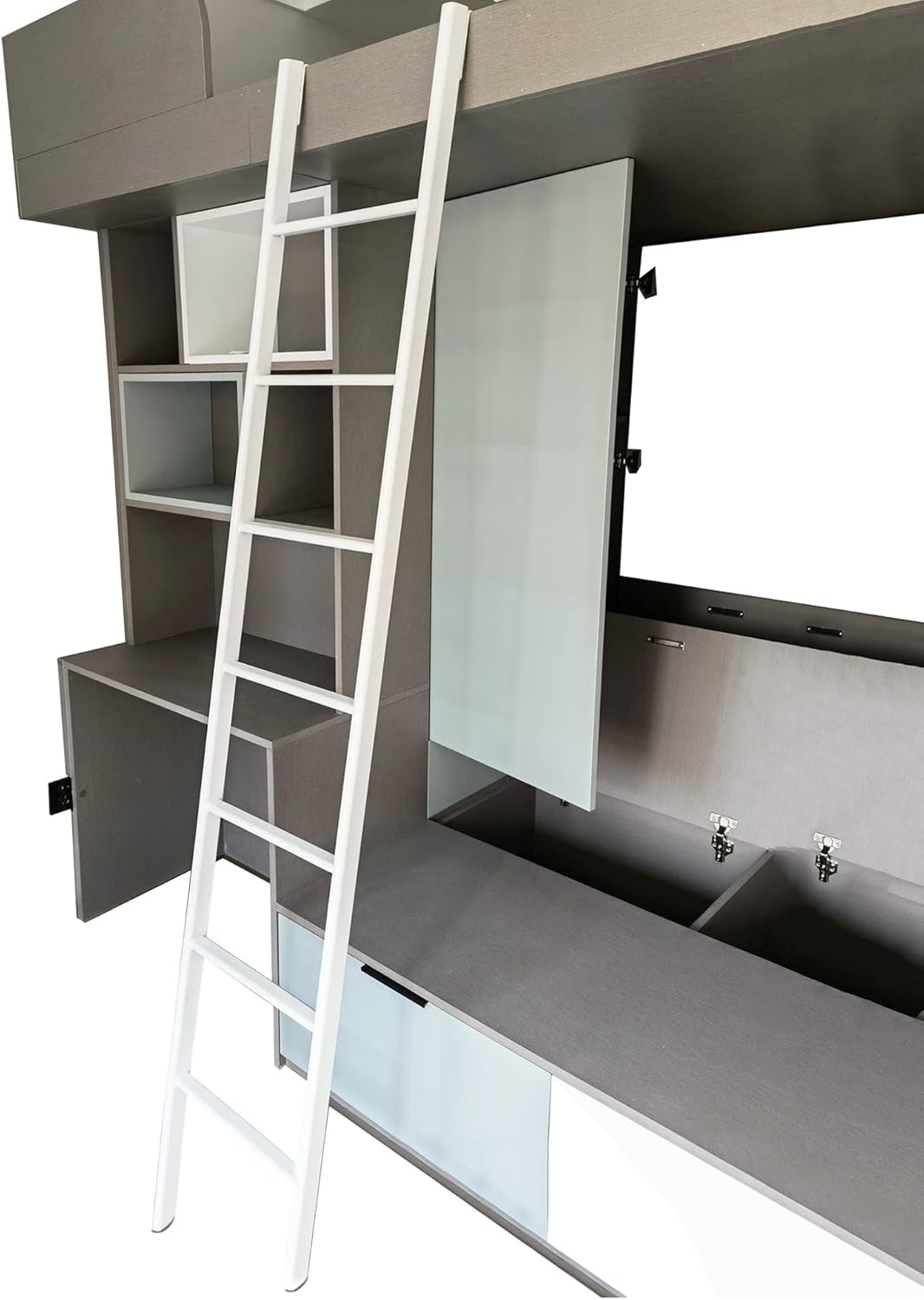 Bunk ladder provides small feet easier access to their beds or larger feet easier access to stored items. They come with wide pedal to provide bare footed comfort. Provide easy access to the top bunks in your without permanently taking up valuable floor space.Specification:- Product Name: Floor Stand Bunk Bed Ladder- Material: Iron- Color: White, Black, Silver- Size: 1.5 m/59 inch/ 4.9 ft, 1.55 m/61 inch/ 5.1 ft, 1.6 m/63 inch/ 5.25 ft, 1.65 m/65 inch/ 5.4 ft, 1.7 m/67 inch/ 5.6 ft, 1.75 m/68.9 inch/ 5.7 ft, 1.8 m/70.8 inch/ 5.9 ft- Load: 150 kg/330 lbs- Ladder Width: 0.33 m/33 cm/13 inch/1.1 ft- Ladder Steps: 4/ 5/ 6/ 7/ 8 StepsFeatures:- Made of metal iron, stable and durable. - Makes it easy to climb in and out of bed.- Straight ladder with 2 hooks & wide pedal.- The ladder can be quickly installed and used.- Portable and convenient for storing.- Provides easy access to the top bunks in your RV.- Be suited for Dormitory or bedroom bunk bed.- Removable hook for easy storage when not in use.- Installed on the bunk bed's edge, easy to get on and off the bed.Package Included:1 x LadderNotice: - There may be an error of 1-3 cm due to manual measurement.- There may be chromatic aberration due to the difference between the recording lamp and the display. Please refer to the actual product.