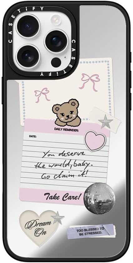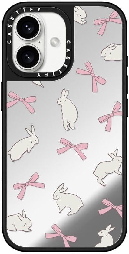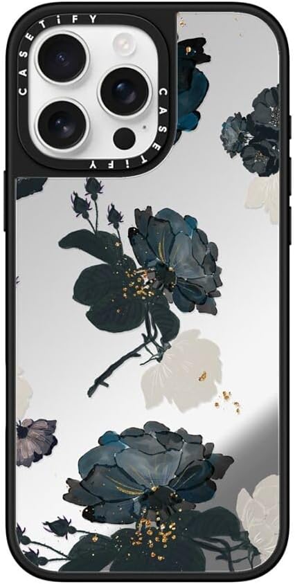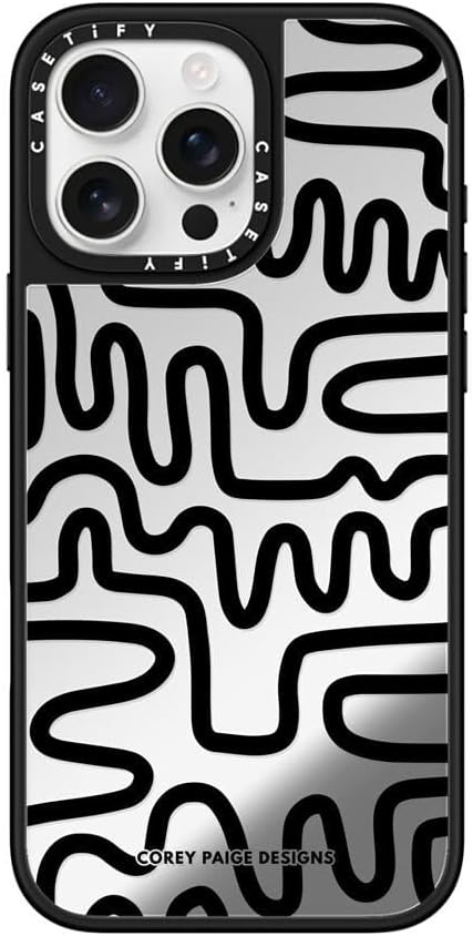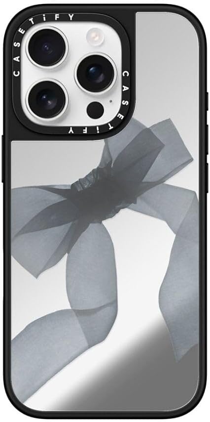 CASETiFY Mirror Case for iPhone 16 Pro Max [Reflective / 4.9 ft. 1X Military Grade Drop Protection/Compatible with Magsafe] - Wrapped in A Bow - Silver on Black
