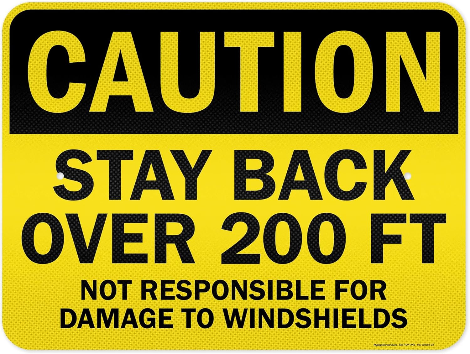 Caution Stay Back 200 Ft Not Responsible For Road Objects Sign, 18x24 Inches, 55 mil thick HDPS (high density polystyrene), Made in USA by My Sign Center