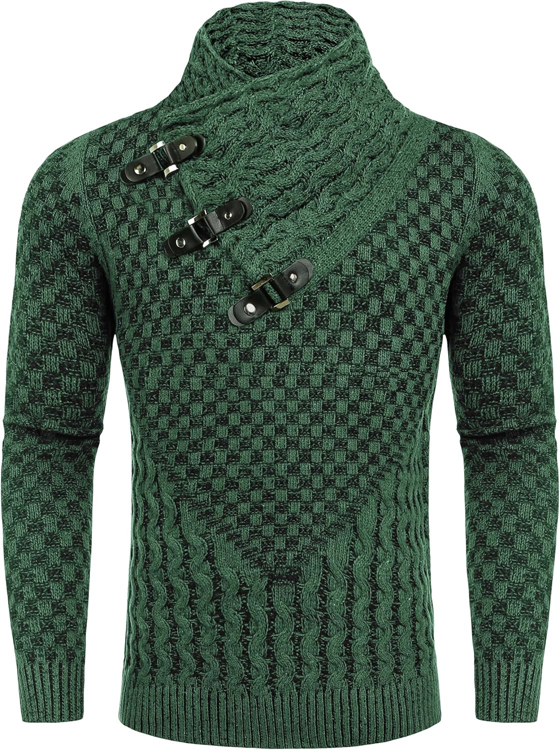 COOFANDY Men's Turtleneck Sweater Hoodied knitted Slim Fit Jumper Long Sleeve Pullover Autumn WinterThe high-end retro texture complements the overall style, with a unique style of design, exquisite detail and workmanship. The classic turtle neck sweater is the indispensable of great cold-weather, it's comfy, warm and thick, and it resists shrinkage and wrinkles.BrandCOOFANDY builds on our comfort heritage with innovative style to give you the looks that fit your life, your daily look, and your style.COOFANDY men's thick plaid knit hoodies with durable material will keep you warm and make sure your look is attractive and eye-catching. Combinable with men's slim fit jeans, pants, men's casual blazers jacket.FeaturesTurtleneck; Adjustable collar; High Neck; Knitted Jumper Pullover; Long Sleeve Knit Sweaters Hoodie; Plaid Top;Modern Basic Designed; Urban Fashion Style; Cotton; Stylish; Retro; Classical;Casual; Solid; Cool; Warmth; Elasticity; Good Thickness and Softness, Comfortable, Do not Shrink and ball; Slim Fit.Size Chart: S M L XL XXL S Size: Shoulder: 17.2"/ Chest: 38.2"/ Sleeve: 24.4"/ Center Back Length: 26.2"M Size: Shoulder: 17.7"/ Chest: 40.2"/ Sleeve: 24.8"/ Center Back Length: 26.8"L Size: Shoulder: 18.4"/ Chest: 43.1"/ Sleeve: 25.2"/ Center Back Length: 27.4"XL Size: Shoulder: 19.1"/ Chest: 46.1"/ Sleeve: 25.6"/ Center Back Length: 28.0"XXL Size: Shoulder: 29.8"/ Chest: 49.1"/ Sleeve: 26.0"/ Center Back Length: 28.5"Tell UsWe care about our valued buyers, if you have any questions, we will be very glad to help you.