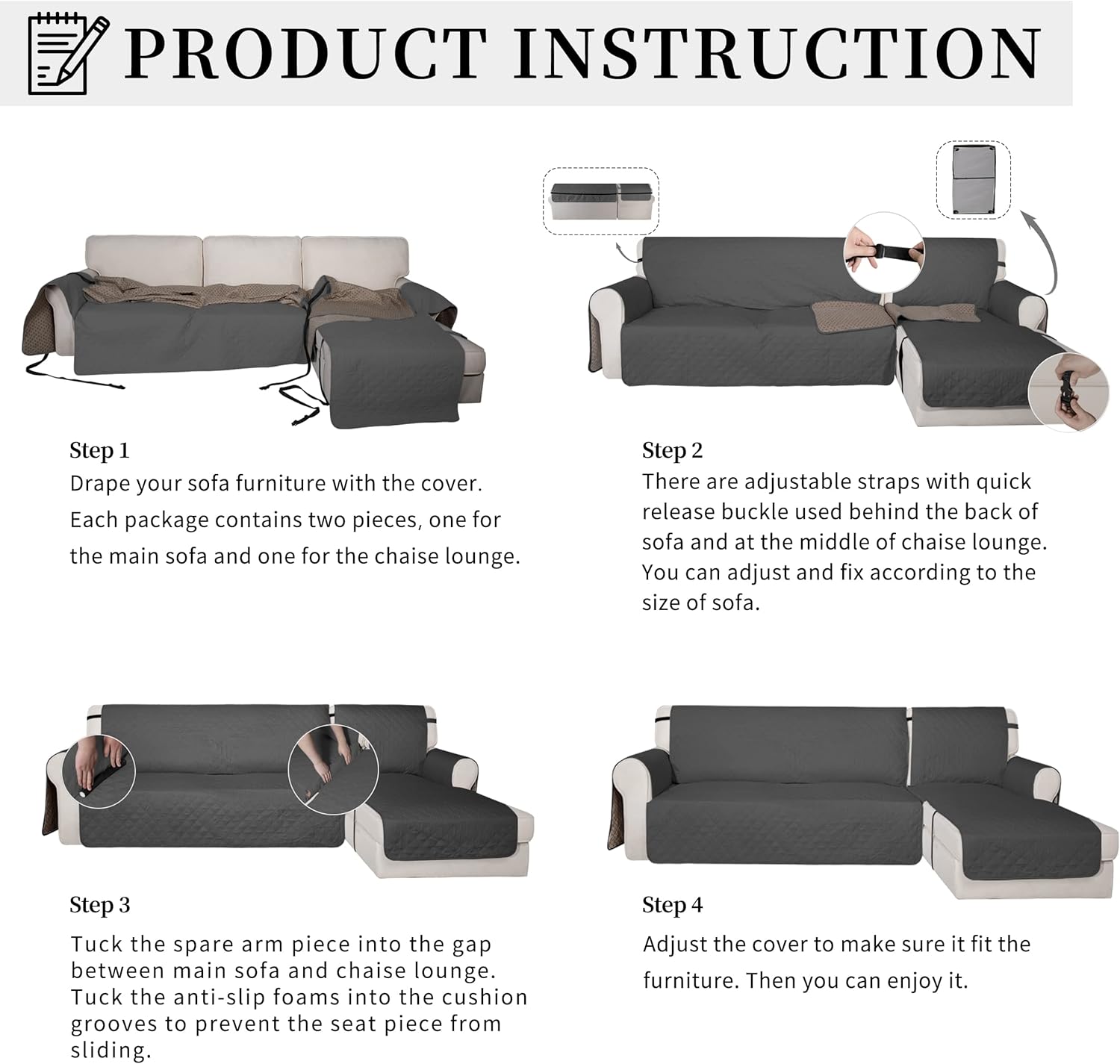 Easy-Going Global Sofa Cover Professional Manufacturer! The factory has been developing and producing high-quality household articles for ten years. The brand's goal: To make homes more comfortable.Protect the furniture and keep it looking new.100% Waterproof, reliable protection from all liquids, dirt, and abrasion.Various sizes and colors available for your choice.Various anti-skid measures can prevent the L shape sofa cover from sliding and make it more fixed.Protect your bed from pet fur, drool, barf, pee, scratches, dirt, etc.Enjoy great time with your pets on the sofa!Advisement:1.Machine washable in cold water. Wash separately at gentle cycle. Using mild laundry detergent. Tumble dry with low heat. Do not bleach.2. Due to different computer/screen displays, the color of the product may be a bit different from the picture. And because we are making our products by hand, there may be a deviation of about 2 cm.Risk free purchase: