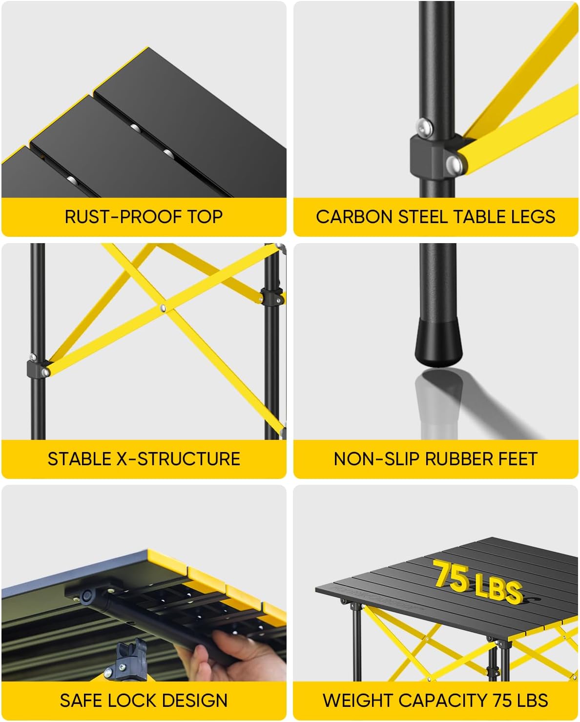 FanttikOutdoor Zeta C6 Pro Camping Tent 6 Person Instant Cabin Tent Setup in 60 Seconds with Rainfly & Windproof Portable with Carry Bag for Family Camping & Hiking, Khaki & FanttikOutdoor Zeta V11 Pro Camping Table, Portable & Lightweight Folding Roll Up Table with Carry Bag, Ideal for Camping, BBQ, Picnic, Party, Outdoor Dining, Medium