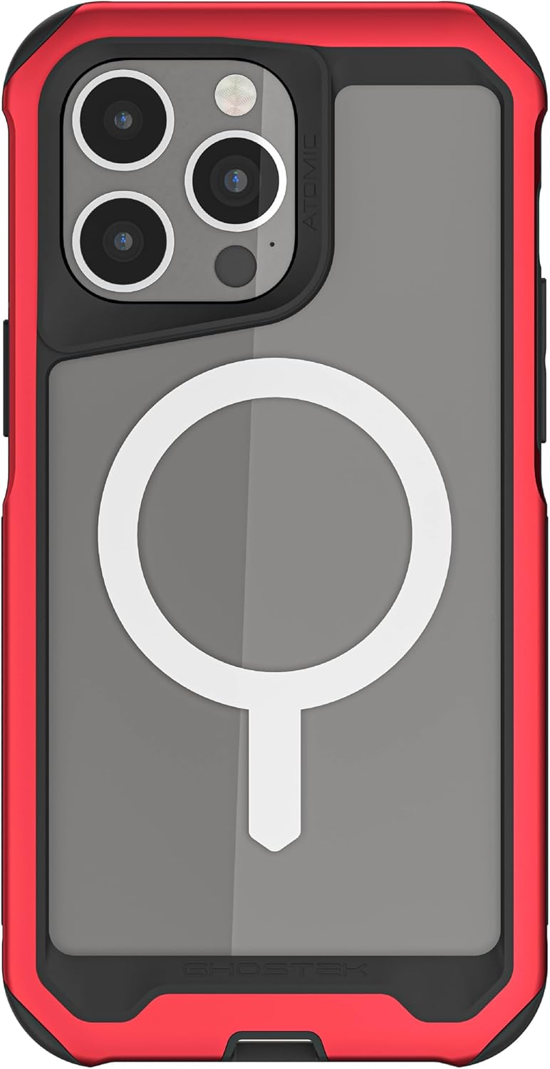Ghostek Atomic Slim iPhone 17 Pro Max Case, Compatible with Apple MagSafe Accessories, Aluminum Metal Bumper, Shockproof Drop Protection (6.9 Inch, Red)