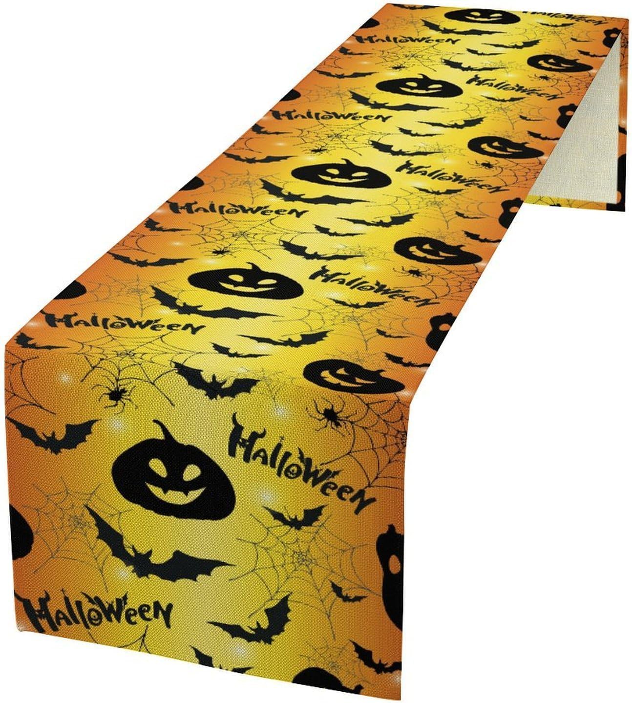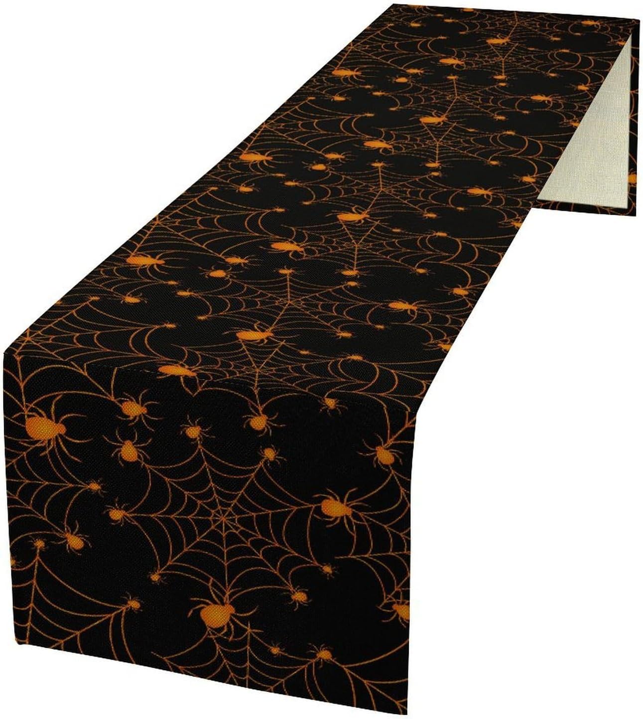Halloween Horror Table Runner Dancing Skeleton Pattern Decor for Indoor Outdoor Party Dinner Festival Rustic Farmhouse Winter Holiday Home Kitchen Dining Room, 13x120in