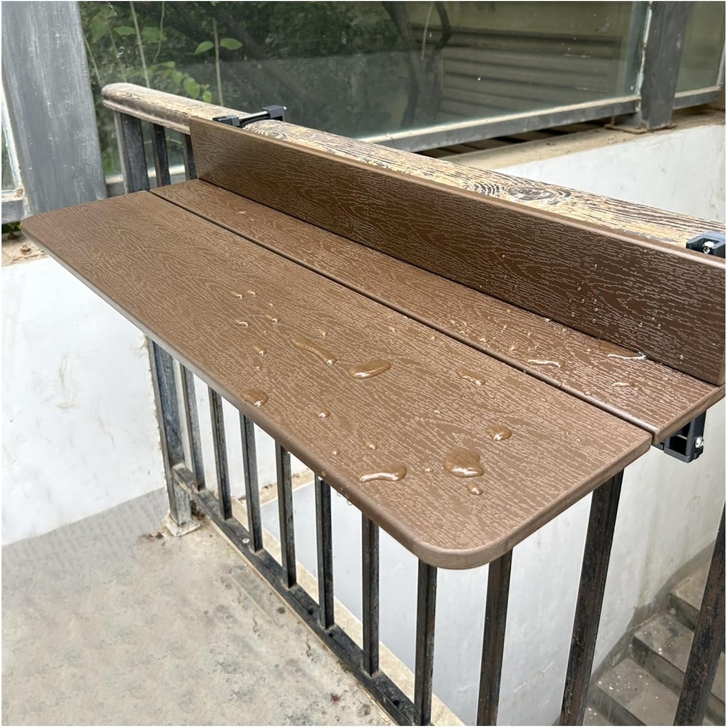 The balcony hanging deck table has a spacious tabletop for placing items, allowing you to enjoy a pleasant leisure time. At the same time, the hanging design can free up storage space on the ground, avoiding taking up too much space on the narrow balcony.Must read:1. Please evaluate the firmness of the railing and the risk of falling objects from high altitude by yourself, and purchase after confirming safety2. Glass railings and railings that cannot be installed with locks cannot be used, Applicable railing types: square metal railings, square double railings, radiators, wooden railings, round metal railings are all applicable. Perfect match with any outdoor space.※ Unsuitable railings: glass railings without crossbars, all-glass railings.Specifications:Color: BrownTable Design: Dining Table, Work TableSpecial Features: Folding, HangingRoom Type: Porch, Garden, Balcony, Terrace, ApartmentMaterial: Aluminum Alloy Frame, 304 Stainless Steel Standard Accessories, High-grade Plastic Wood TabletopMaximum Load Capacity: 40KGApplicable Railing Width: 1-22cmLocking Screw Gear: ≤8.5cm/3.3 inchesDesktop Length: 60cm/80CM/100CM/120CMDesktop Width: 27CM/37CMBaffle Height: 9cm/3.5 inchesAdjustable Height Range: 2-33cm/0.8-13 inches below the railingLeveling Range: 0-3.5 cm/0-1.37 inchesPlease Note:1. Clean with a clean damp cloth. All decorative items are not included in this offer.2. The color of the item may be slightly different from the photo due to the lighting or screen of the monitor. Slight measurement errors may occur due to manual measurement.3. If you have any questions or concerns, please contact us and your email will be responded to within 24 hours.