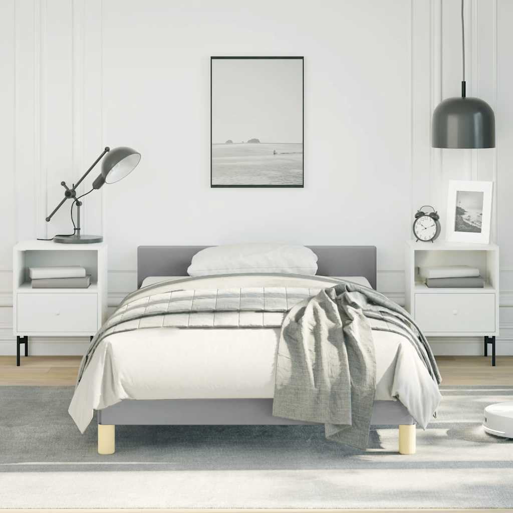 Light Grey Polyester Bed Frame with Headboard Queen Size Platform Foundation Sturdy Slatted Durable Furniture for Modern Minimalist Bedroom Mattress Support