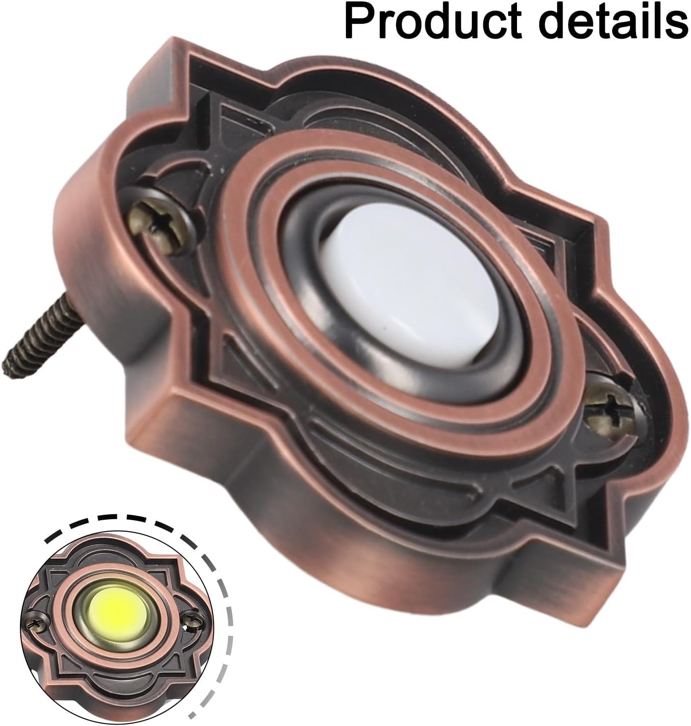 Features:Good Construction: Crafted from solid iron, this metal doorbell push button guarantees long-lasting durability, capable of enduring daily use and harsh weather conditions for years to come.Llluminated Convenience: The built-in LED light illuminates the button, enhancing visibility in low-light environments and adding a stylish touch to your entryway.Hassle-Free Installation: Designed for effortless mounting, this doorbell push button is compatible with most wired systems, insure a quick and easy setup on any wall appearance.Elegant Design: Its sleek and modern aesthetic seamlessly complements any home decor style, whether traditional or contemporary, enhancing the overall look of your front door.Weather Resistant: Built to withstand rain, snow, and extreme temperatures, this weatherproof doorbell push button ensures reliable functionality regardless of the for ELEMENTS.Specifications:*Product Name:Doorbell Push Button*Material:Metal*Size:As shown*Color:BronzePackage Content:1 x Doorbell Push Button2 x Screws