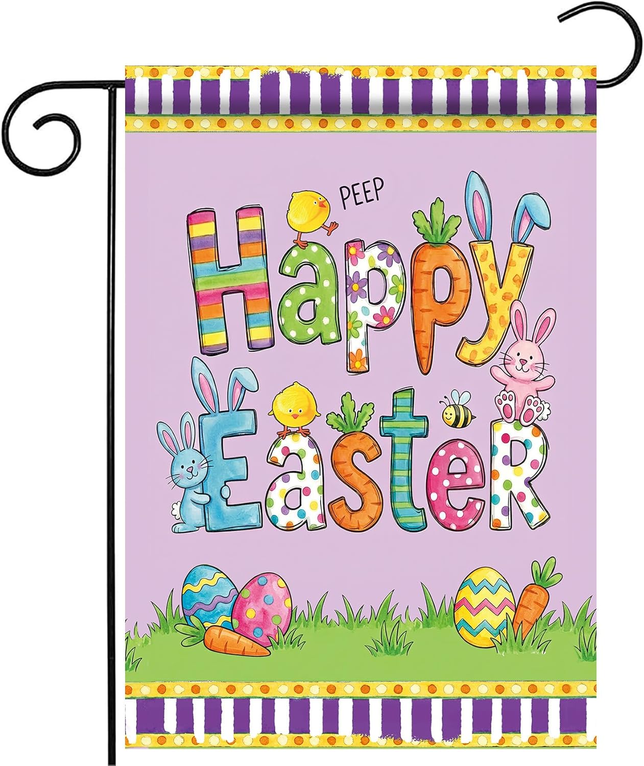 Morigins Easter Eggs Garden Flag Double Sided, Easter Bunny Decorations for Porch Welcome Banner for Outside March Spring Yard Outdoor Farmhouse Decoration (Large-28×40 inch)