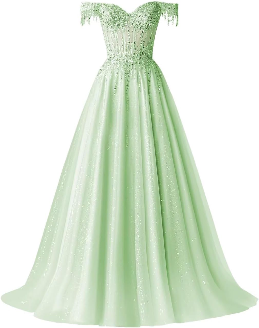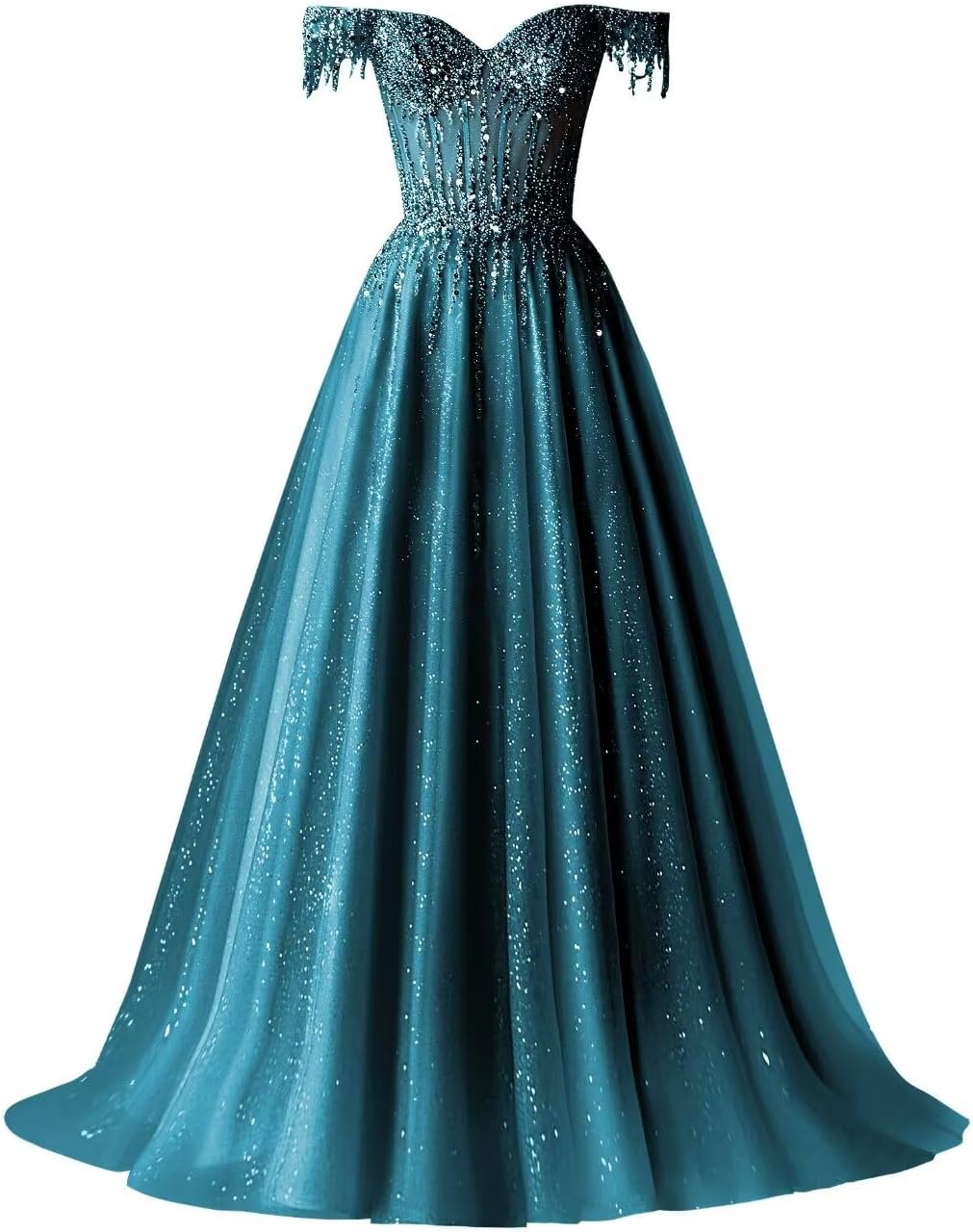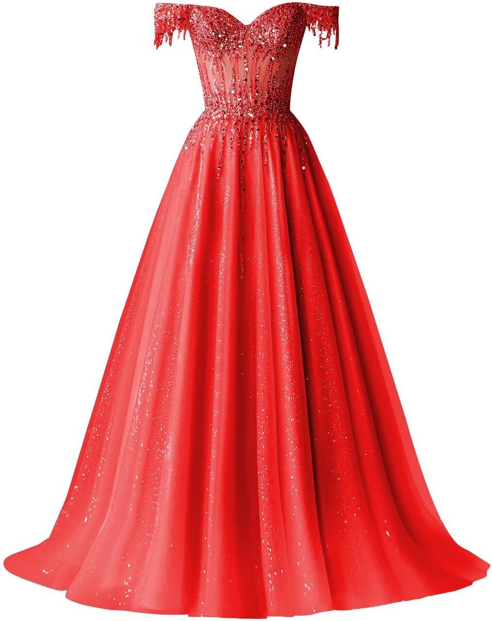 Welcome to our store Off Shoulder Tulle Prom Dresses Long Ball Gown for Women Sequin Beaded Formal Evening Gown Customized Size: Please sent us measurements as below A.Full Bust _____ inch or ___ cm. B.Waist _____ inch or ___ cm. C.Hips _____ inch"