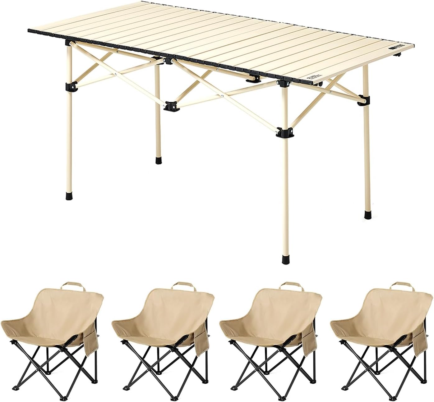 Welcome to my shop~This foldable camping table is made from high-quality materials such as aluminum alloy, solid wood, and plastic. Its sturdy and stable structure is durable and weatherproof, and its strong load-bearing capacity makes it a reliable companion for outdoor adventures, ensuring a reliable and reliable companion.This camping table is lightweight and foldable, making it portable and easy to store. It folds in seconds, taking up minimal space when folded. It's perfect for picnics, barbecues, and other occasions, making it easy to carry and enjoy the outdoors.- Name: Outdoor Folding Table and Chair Set- Color: White, Black- Material: Carbon Steel, Oxford Cloth- Table Dimensions: 54*50*55cm/21.3*19.7*21.7in, 95*55*55cm/37.4*21.7*21.7in, 121*59.5*60cm/47.6*23.4*23.6in- Chair Dimensions: 47*47*67cm/18.5*18.5*26.4in- Suitable for a variety of outdoor occasions: camping, picnics, family outings, garden parties, RV vacations, hiking, fishing, barbecues, travel, and parks.- Includes: Folding camp chairs, folding table, and carrying/storage bag.Safety Warning: When used outdoors, the chairs must not exceed a weight limit of 100kg, and the table must not exceed a weight limit of 75kg. Please ensure the table is properly installed and secured.