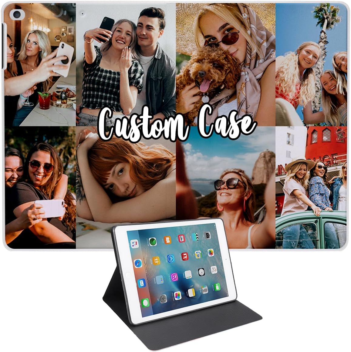Personalized Customized Case for iPad 6th/5th(2018/2017),Drop-Resistant Leather Flip Smart Cover for iPad 9.7 Inch,Auto Wake/Sleep,Custom Multi-Picture Collage Photo Text,for Family,Friends,Gifts