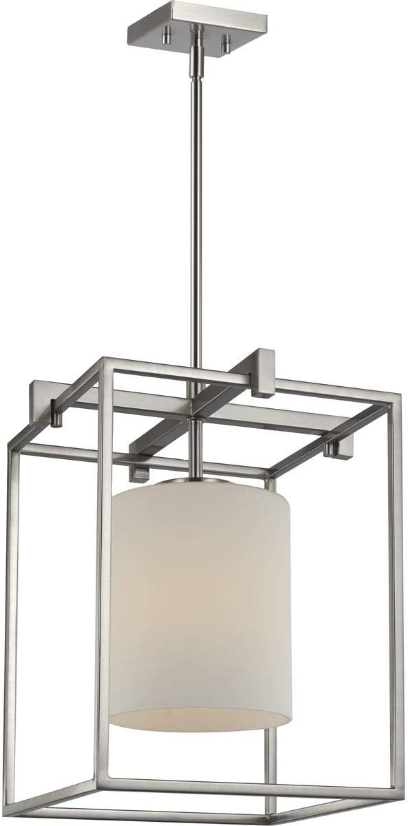 Stick with simple geometric forms and clean crisp lines with this modern mini-pendant. A beautiful opal glass shade visually calms the sharp edges of the boxy frame in a masterful stroke of design excellence. The frame is coated in a classic brushed nickel finish that contrasts the light shade. The light fixture is just right for spaces in need of a subtle, feminine touch.