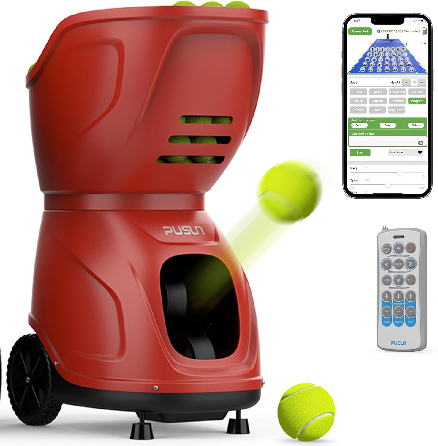 | Included Components | Charger, Remote control, Tennis ball machine, User Instructions |