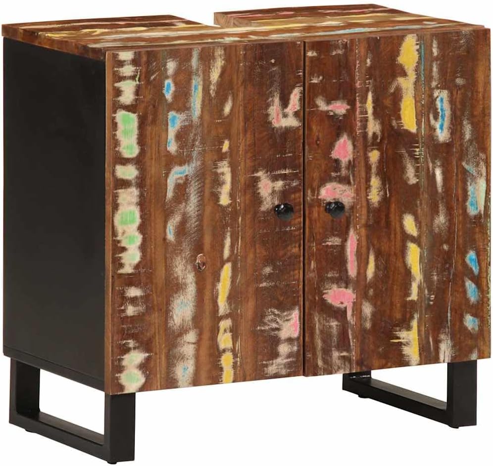 This rustic sink cabinet is a must-have for your bathroom, mixing practicality with good looks. Made from solid mango wood and featuring an engineered wood shelf, it boasts a fab natural finish that goes well with all kinds of bathroom styles, adding warmth and charm to the space.Stylish Design: The rustic solid mango wood look blends beauty with usefulness, really upgrading your bathroom decor.Generous Storage: With two compartments, it has plenty of space for all your essentials, keeping everything tidy.Quality Materials: Made from solid mango wood and reinforced with engineered wood, ensuring it's built to last.Easy Assembly: You can put this sink cabinet together just with one person and the tools given, making setup a breeze.Safety Installation: The wall attachment device boosts stability and safety, making it a clever choice for homes.Color: BrownShape: RectangularMaterial: Solid mango woodIndoor/Outdoor: Indoor OnlyNumber of Doors: 2Cover Included: NoRoom: BathroomHeadboard Included: NoCapacity: Holds up to 2 compartmentsDimensions: 13.0 x 24.4 x 22.8 in (W x L x H)Leg Height: 3.9 inWeight: 31.61 lbsSwings: NoLadder: NoDelivery Contains: Sink cabinetAssembly Required: YesRecommended Number of People for Assembly: 1
