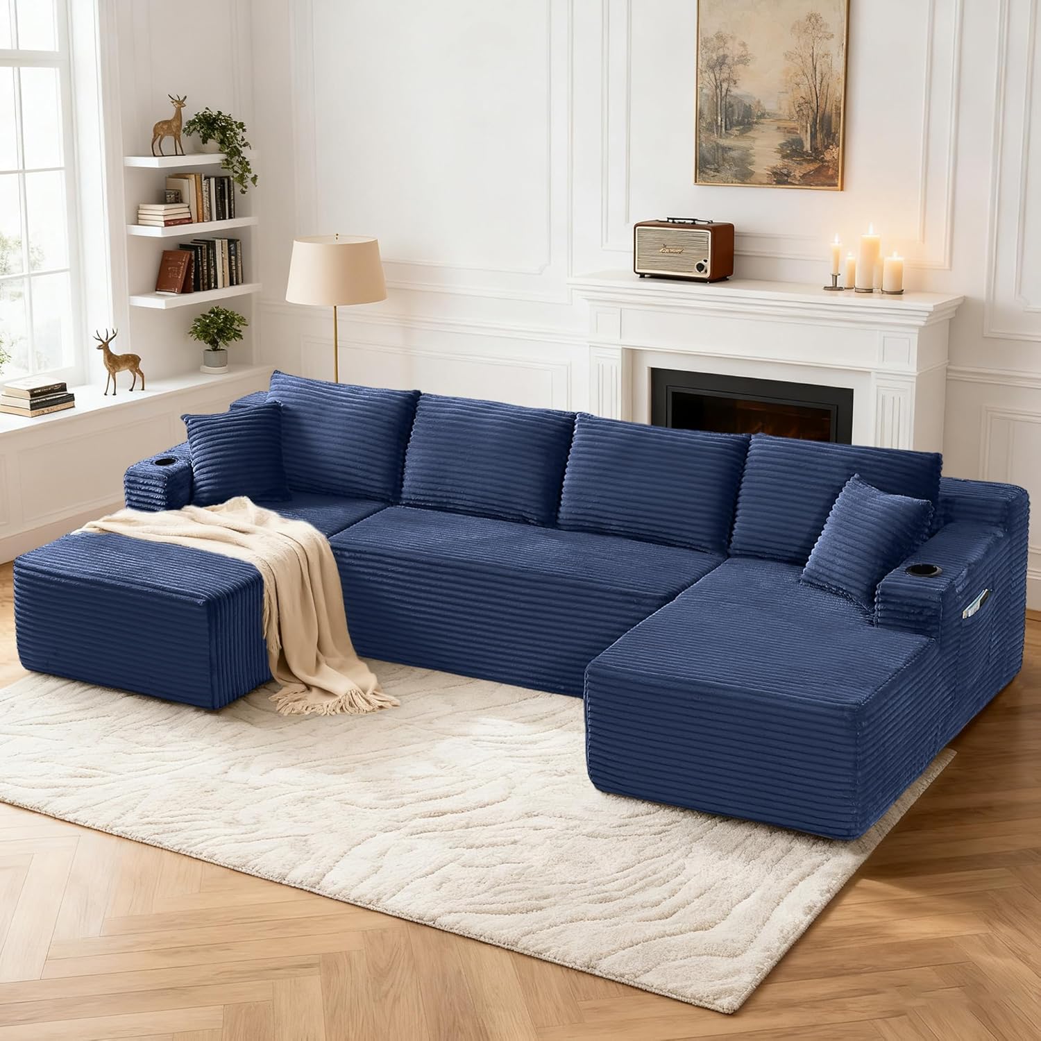 • Luxurious Comfort: This U shaped sectional cloud couch is upholstered in premium corduroy fabric, and is fully filled with high-density foam and high-resilience springs to provide an exceptionally soft and comfortable experience. The backrest and seat cushions provide support for your back, waist, hips and legs, allowing you to lean back and relax in comfort.
