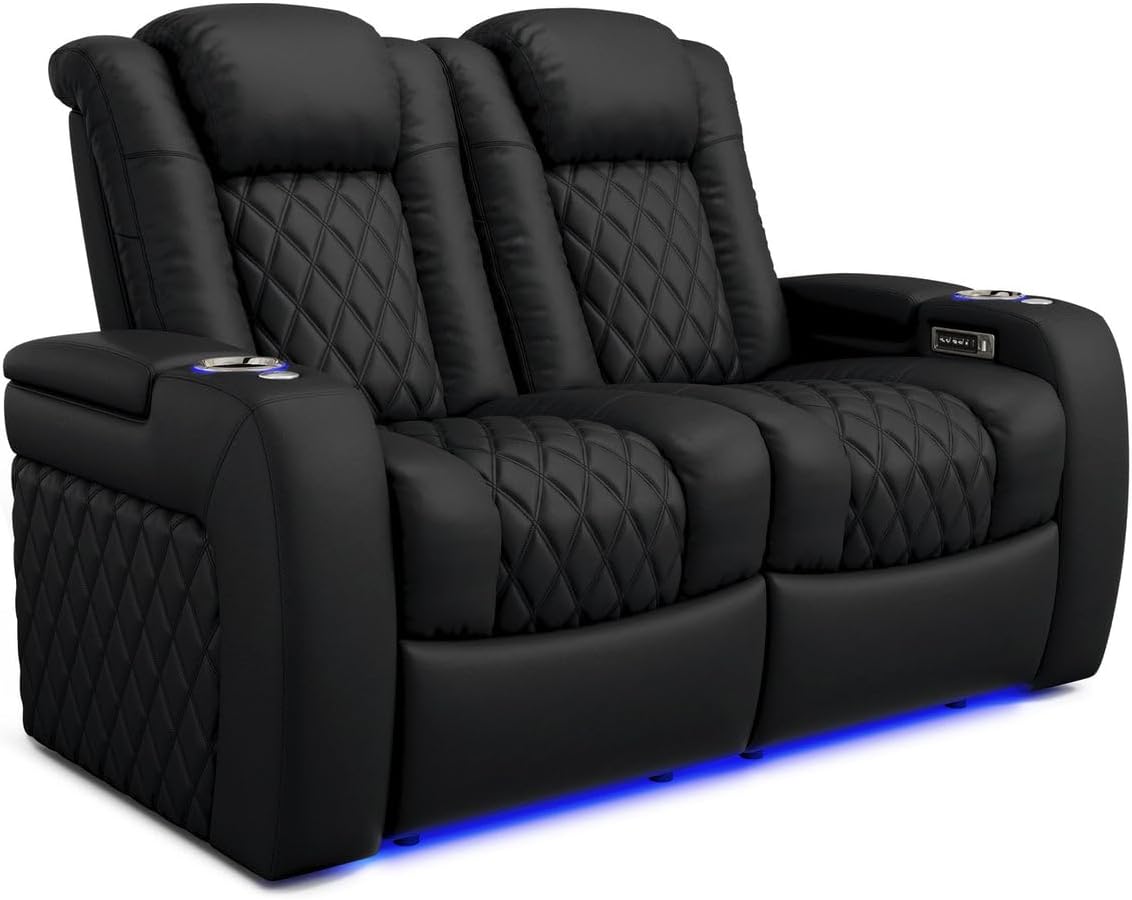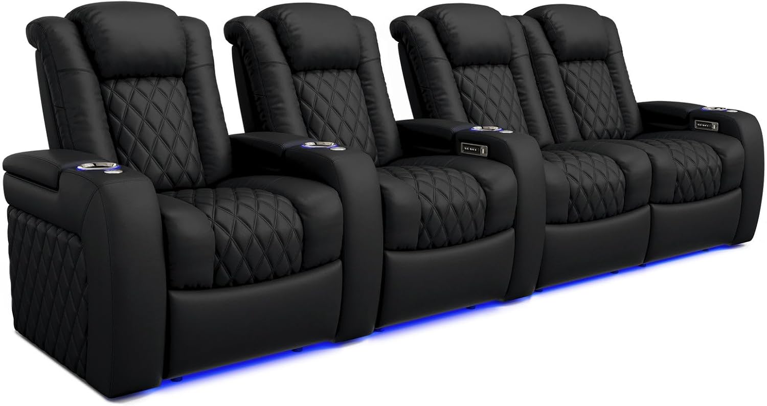 Introducing the Tuscany Luxury Float Zero Gravity Heat & Massage Home Theater Seating. The Tuscany Luxury Float Zero Gravity Heat & Massage Edition elevates the iconic Tuscany model to new heights of comfort, craftsmanship, and sophistication. This fully upgraded version is tailored for those who demand bespoke seating with timeless design and modern elegance. Upholstered in luxury Semi-Aniline 20,000 Italian Nappa Leather across all areas that touch your body, it surpasses our premium top-grain Nappa Leather 11000. The buttery matte finish is smooth, resilient, and consistently luxurious, offering an unparalleled tactile experience and refined aesthetic. Every detail is meticulously crafted, from the French diamond stitching that adorns the seating surfaces to the bold, distinctive accents that define its modern yet timeless design. For the ultimate home theater experience, the Tuscany Luxury Float Zero Gravity Heat & Massage Edition includes heated seating cushions that soothe and relax, therapeutic massage technology targeting key back zones for focused relief, and an Exclusive Float zero-gravity recline function that relieves pressure while promoting circulation. The combination of luxurious materials and cutting-edge comfort technology ensures this seat is both a visual centerpiece and the pinnacle of relaxation.