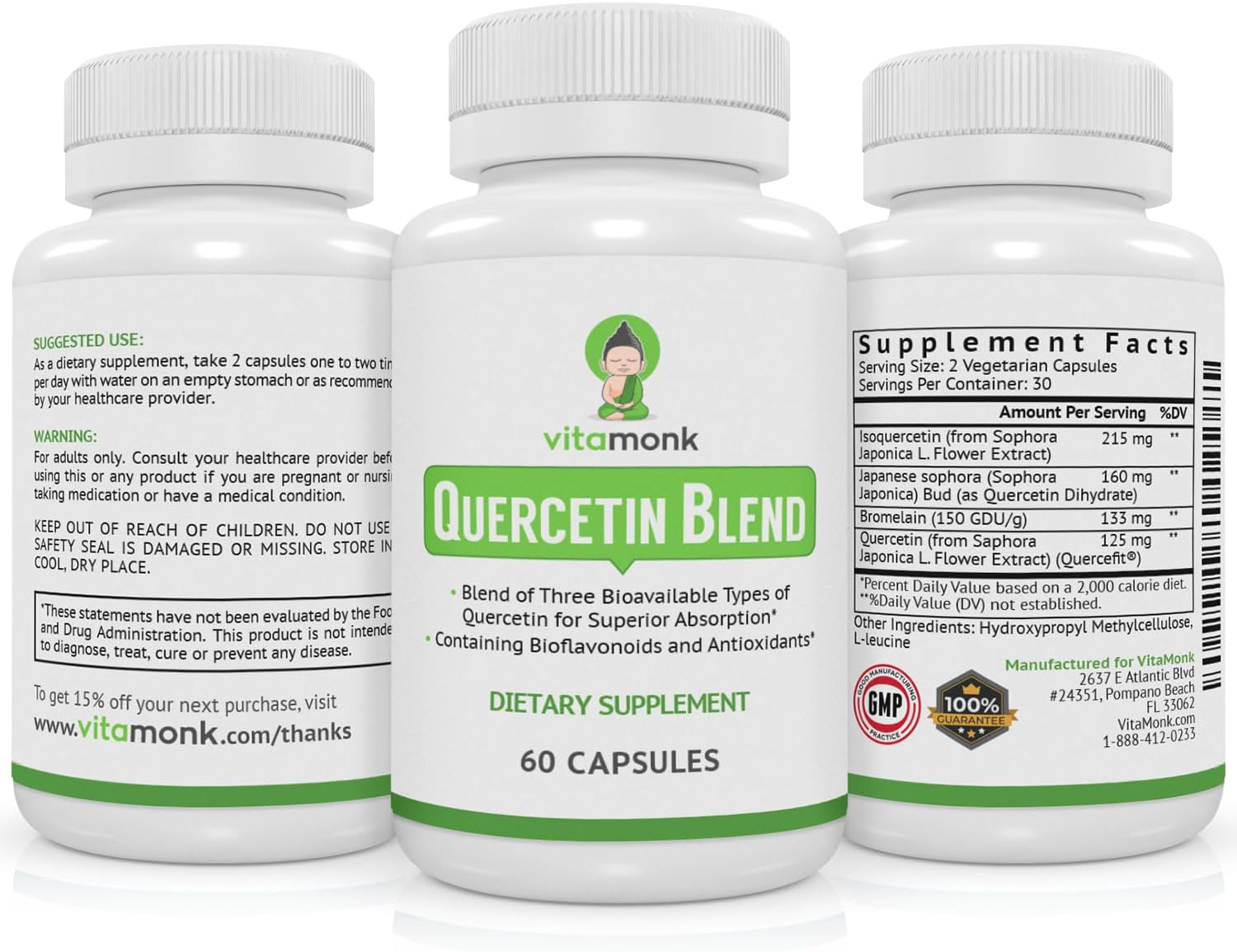 Clean, Non-GMO Formula: Crafted with non-GMO ingredients and housed in veggie capsules, this quercetin blend is free from artificial fillers, ensuring you get a pure and clean formula that’s suitable for a variety of diets.